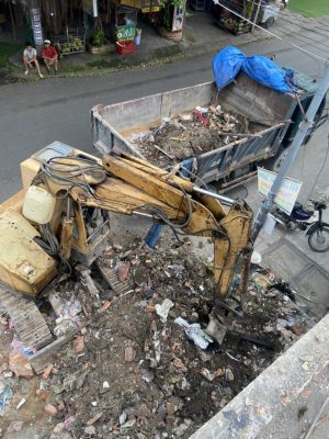 – Đục phá nền xưởng bê tông.